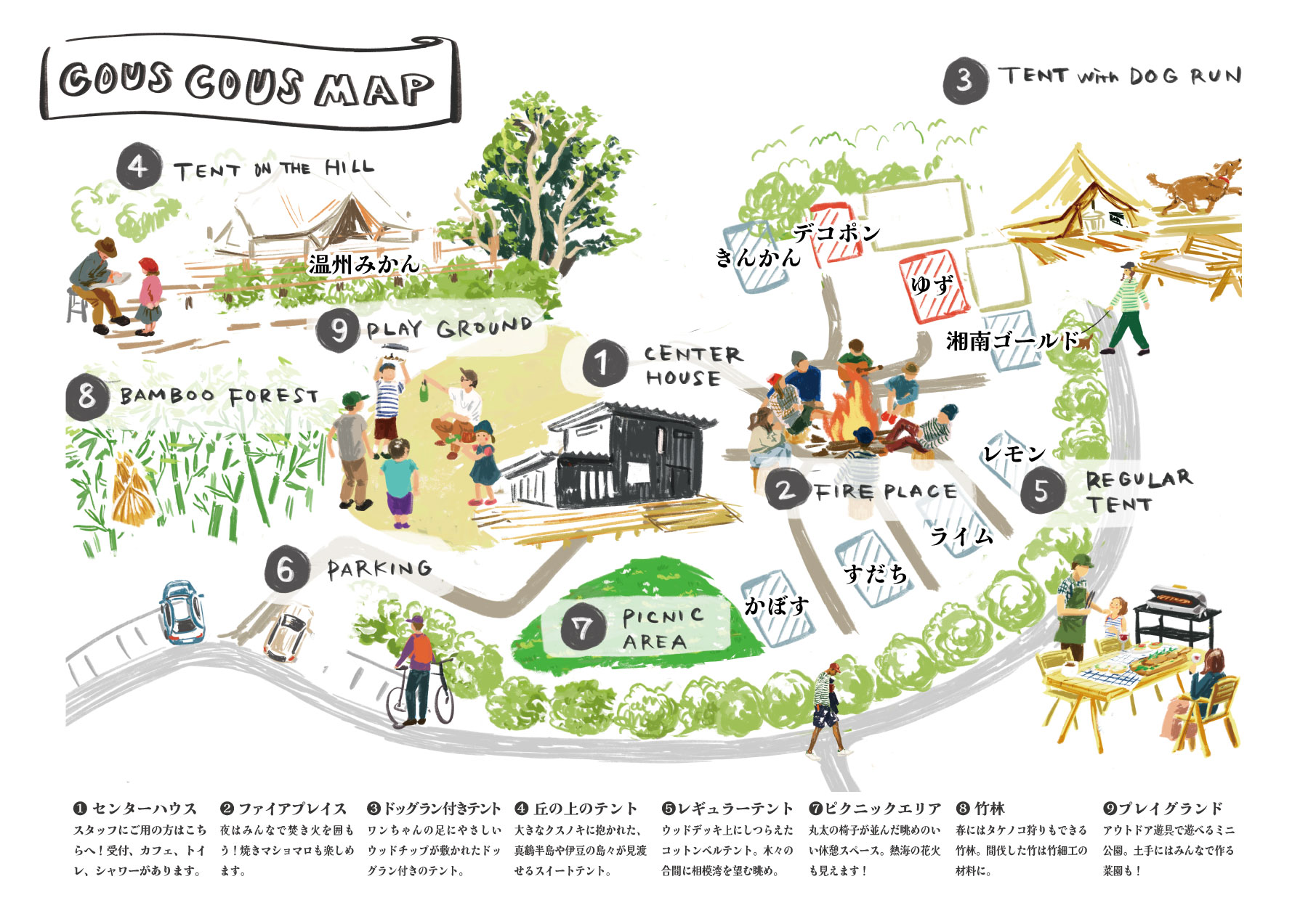 場内マップ 相模湾と三浦半島の眺め 丘の上のスイートテントからの眺め 相模灘と伊豆半島の眺め センターハウス センターハウスとリラックススペース センターハウス レストラン レストラン BBQディナー ディナー 鹿肉バーガー 朝食(ホットサンドとフレンチトースト) ホットサンドの朝食 フレンチトーストの朝食 豚汁朝食 はらっぱのレギュラーテント ファイアプレイス 宿泊テント 昼のファイアプレイス 宿泊テント 宿泊テント 宿泊テント 宿泊テント 丘の上のスイートテント 宿泊テント 宿泊テント 宿泊テント 宿泊テント 宿泊テント 丘の上のスイートテント 丘の上のスイートテント ドッグラン キッズクラブ ヨガレッスン スラックライン ブランコ シャワールーム シャワールームと洗面所 トイレ スタッフ